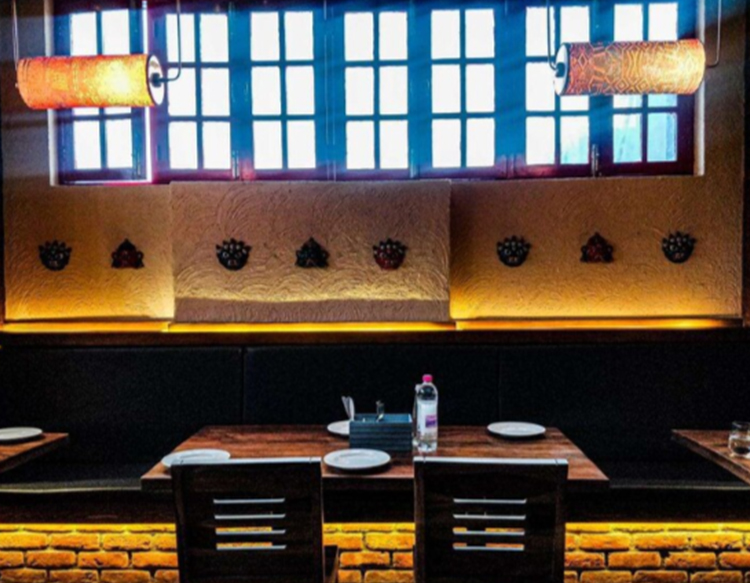 Concept: A warm and inviting atmosphere that transports you to the heart of the Himalayas, perfect for enjoying a meal with friends and family.